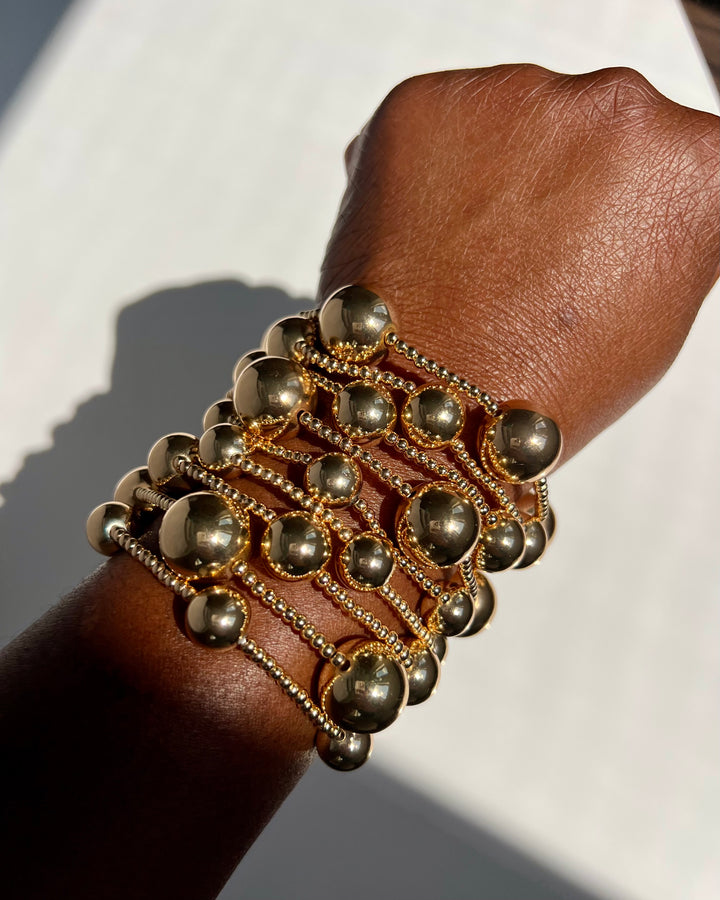 Stylish and practical, these Elastic Ball Detail Bracelets feature an elastic design that allows for easy and comfortable wear, while the ball details add a touch of sophistication. Perfect for any occasion, these bracelets are a must HAVE.