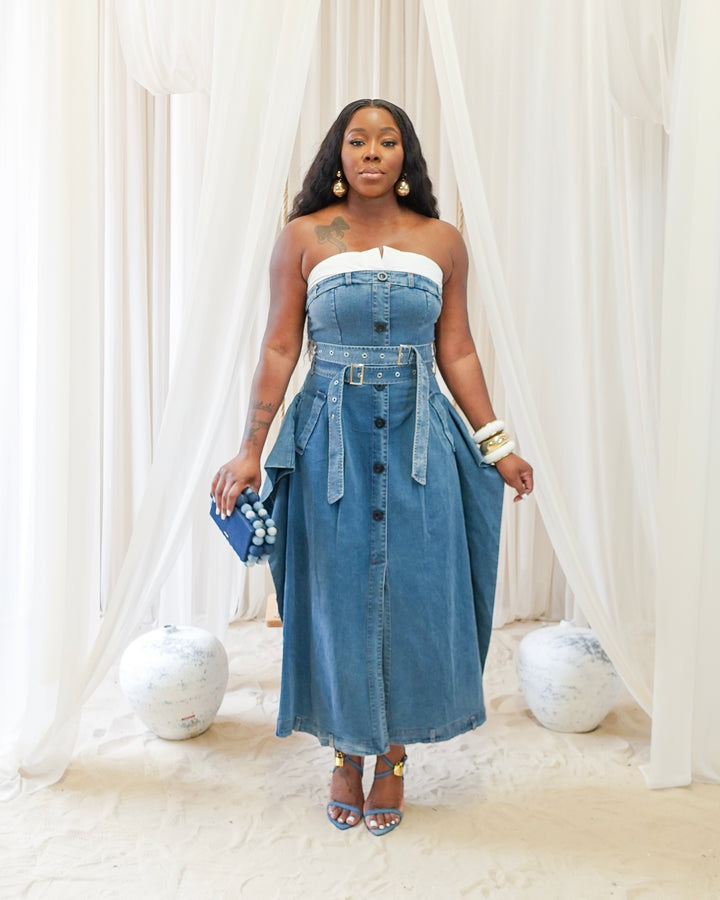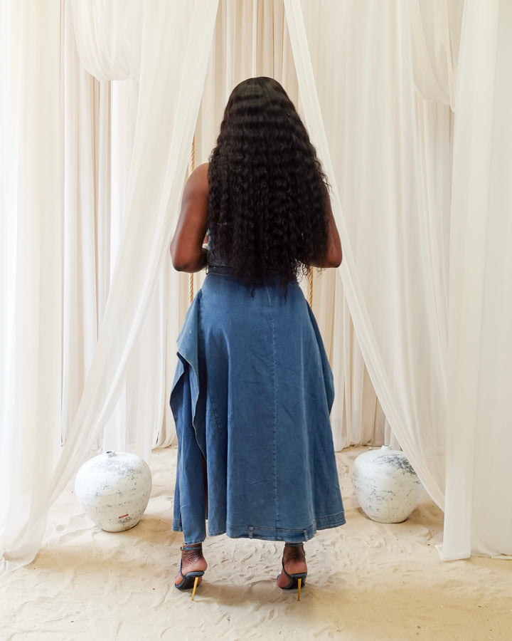 LOOK 1095 ASYMMETRICAL DENIM DRESS