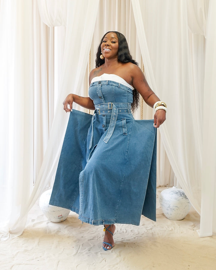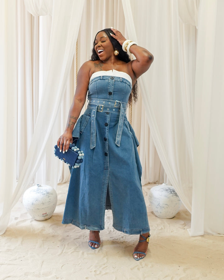 Get ready to slay in this LOOK 1095 Asymmetrical Denim Dress. With two belts and a stretchy back panel, it offers a perfect fit. Plus, the zippers and mock bustier add drama and style. Trust us, this dress is everything you need for a killer look. (Talk about versatility!)