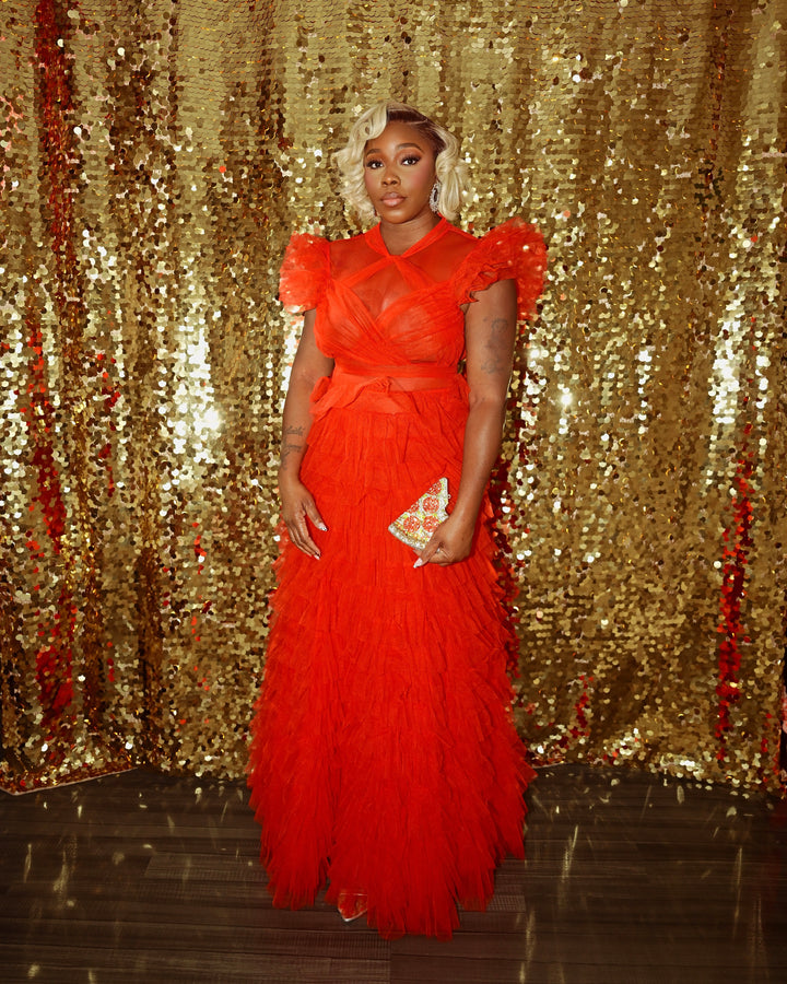 LOOK 1187 TIERED TULLE GOWN Make a statement in this show-stopping tiered tulle gown that demands attention. Luxurious layers of tulle create dramatic movement and dimension, while impeccable lined details elevate every inch of this design. The thoughtfully constructed interior ensures a flawless silhouette and all-day comfort, proving that true elegance lives in the details. No stretch so sizing up is recommended.