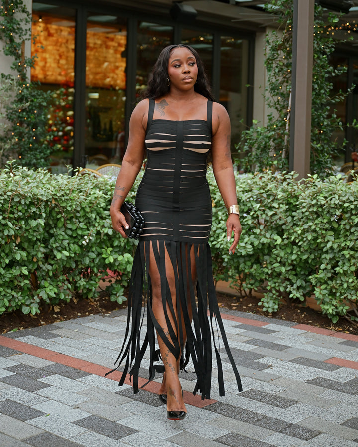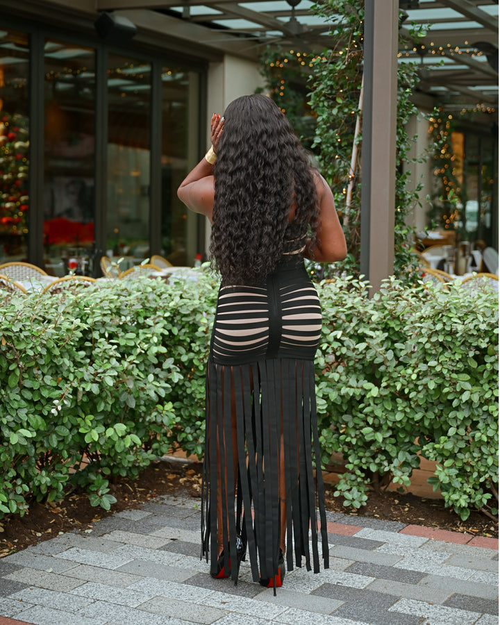 Sculpted to perfection, this sliced bandage dress combines strategic cutouts with a stretchy, form-fitting silhouette that hugs your curves in all the right ways. The lined construction ensures comfort and confidence while the innovative sliced design creates an eye-catching statement.